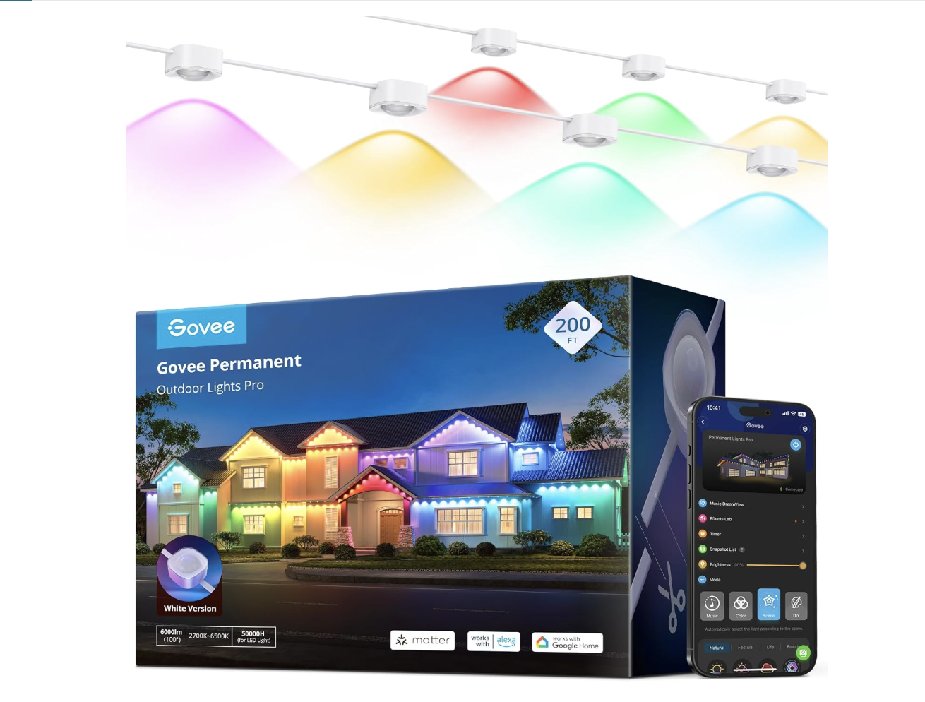 • Smart App & Voice Control: Pair DIY permanent lights with Matter, Alexa, and Google Assistant for smart voice control. Use Govee Home App to individually control the color of each Govee light for outdoor decorations