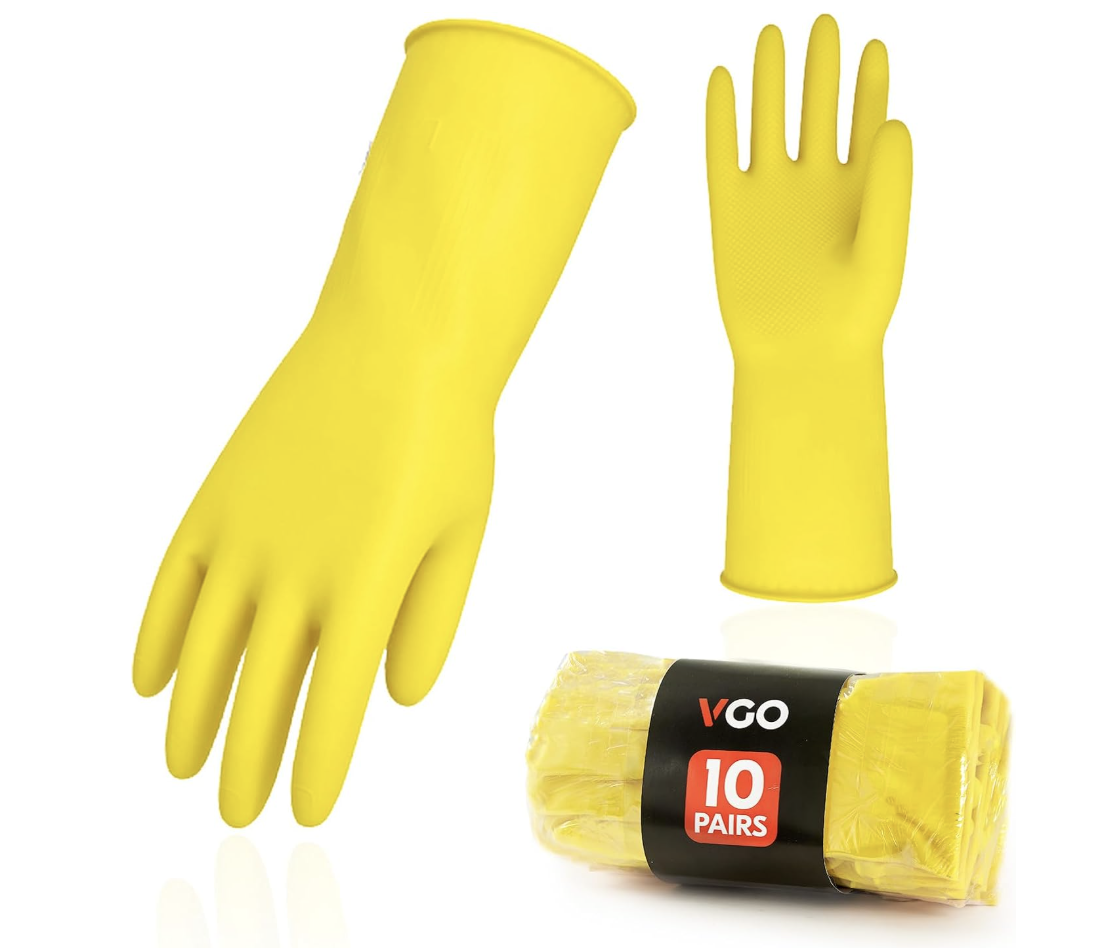 Vgo… 10-Pairs Reusable Household Gloves, Rubber Dishwashing gloves, Extra Thickness, Long Sleeves, Kitchen Cleaning, Working, Painting, Gardening, Pet Care (Size M, Yellow, HH4601)