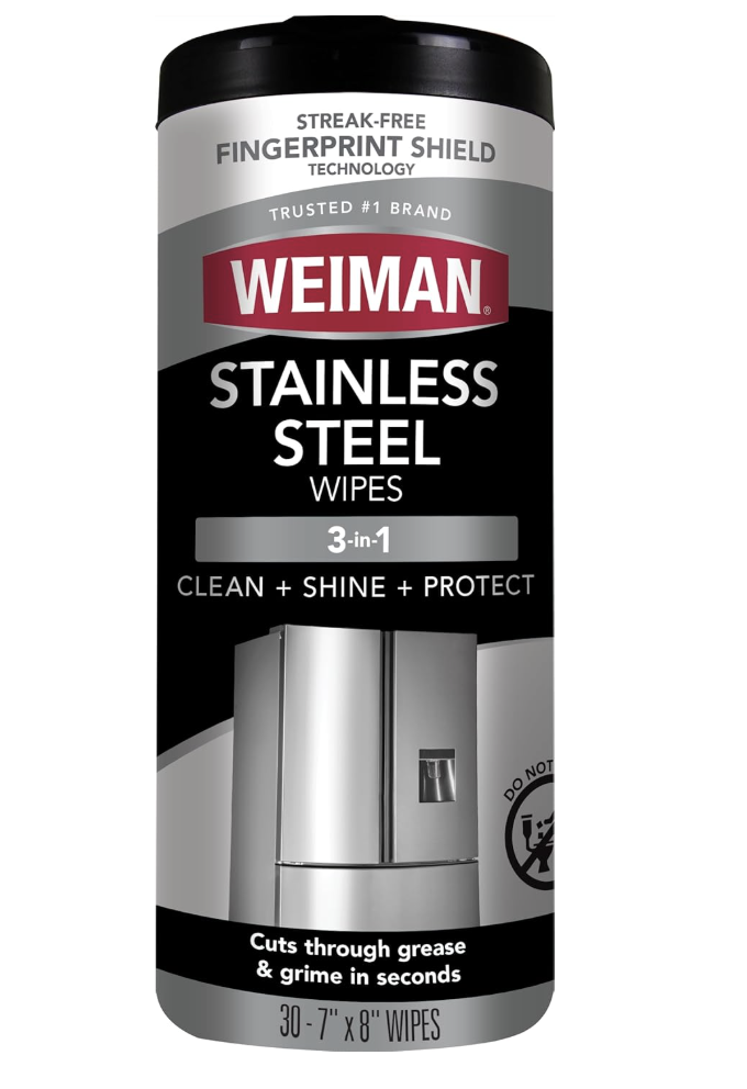 Weiman Stainless Steel Cleaner, 30 Count Cleaning Wipes, Removes Dirt, Grime, and Grease, No Streaks or Residue, Stainless Steel Polish for a Sparkling Clean and Shiny Surface, Cleaning Supplies